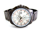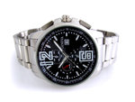 Geneva XXL horloge met datumweergave, zwarte wijzerplaat (chrono-look), roestvrijstalen band met vouwsluiting en roestvrijstalen deksel. De onderkant van het mineraalglas is bedrukt met de cijfers 6 en 12. Nikkelvrij en water resistant.